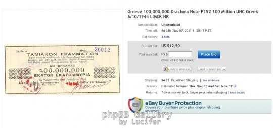 Το χαρτονόμσιμα των 100 εκ δραχμών μας δείχνει πώς ο πληθωρισμός μπορεί να διαλύσει την οικονομία μία χώρας σε κατάσταση πτώχευσης. Μας δείχνει επίσης τί έκανε στην οικονομία της Ελλάδας η Γερμανία το Β Παγκόσμιο Πόλεμο και τί έκαναν και μπορούν να κάνουν στην ελληνική οικονομία οι Γερμανοί αλλά και οι Έλληνες πολιτικοί σήμερα.
