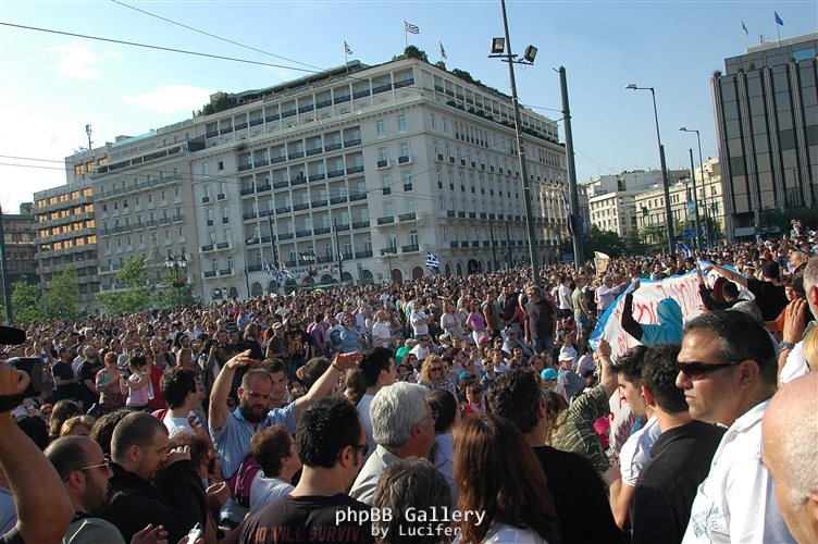Η αποκαλούμενη «ισπανική επανάσταση» έφτασε και στην Ελλάδα, καθώς χιλιάδες ατόμων βρίσκονται ως αυτή την ώρα έξω από τη Βουλή, κρατώντας κλειστή τη Βασιλίσσης Σοφίας και φωνάζοντας συνθήματα κατά του πολιτικού συστήματος, της οικονομικής κρίσης και των περικοπών.