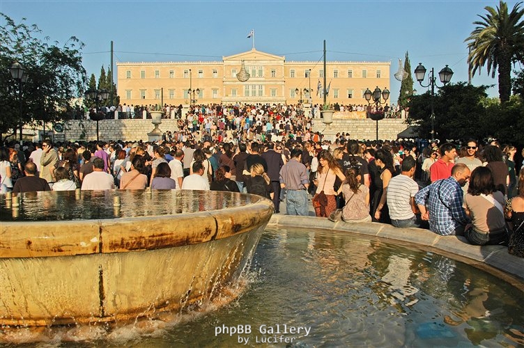 Η αποκαλούμενη «ισπανική επανάσταση» έφτασε και στην Ελλάδα, καθώς χιλιάδες ατόμων βρίσκονται ως αυτή την ώρα έξω από τη Βουλή, κρατώντας κλειστή τη Βασιλίσσης Σοφίας και φωνάζοντας συνθήματα κατά του πολιτικού συστήματος, της οικονομικής κρίσης και των περικοπών.