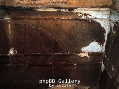 Στο νότιο τοίχο -στο εμφανές μέρος του- δεξιά και αριστερά του θυρώματος, συνεχίζεται η μαρμάρινη επικάλυψη. Οι υπερκείμενοι πωρόλιθοι καλύπτονται με επίχρισμα κόκκινου χρώματος. . Έχει καταπέσει το εσωτερικό τμήμα του υπέρθυρου.