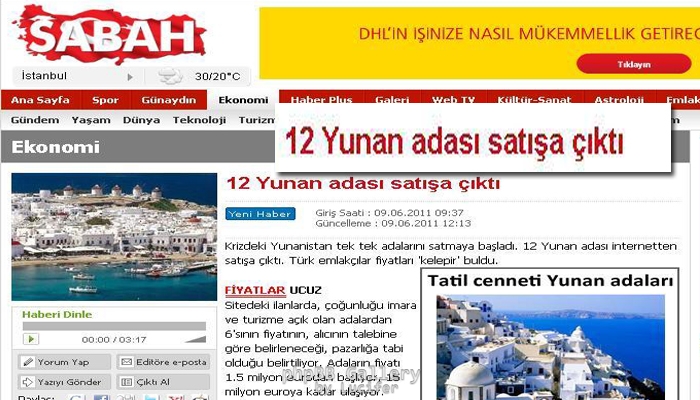 Μάλιστα, η εφημερίδα φιλοξενεί εκτιμήσεις Τούρκων κτηματομεσιτών που λένε ότι τα νησιά αυτά είναι: «Κελεπούρια».