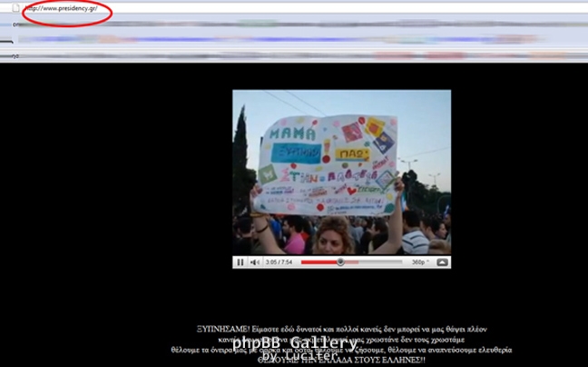 Μπαίνοντας στη σελίδα, αντί της κανονικής, είχε αναρτηθεί βίντεο με πλάνα από τις κινητοποιήσεις των «Αγανακτισμένων», ενώ ακολουθούσε και το εξής κείμενο:
