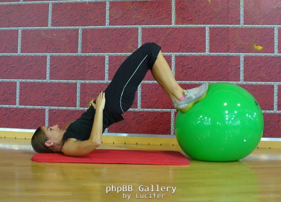 Ξαπλώστε με τα χέρια στο πλάι και τα πόδια σας (το πίσω μέρος από τις φτέρνες) να στηρίζονται στη μπάλα. Ανασηκώστε τη λεκάνη σας από το έδαφος ρίχνοντας το βάρος στις ωμοπλάτες και τα χέρια. Από αυτή τη θέση, ρολλάρετε την μπάλα προς το σώμα σας λυγίζοντας τα γόνατα (στην τελική θέση τα πέλματά σας θα πρέπει να ακουμπούν στην μπάλα). Μείνετε για λίγο σε αυτή τη στάση και ξανατεντώστε τα πόδια σας. Θα πρέπει να νιώθετε την ένταση στο πίσω μέρος των ποδιών σας.