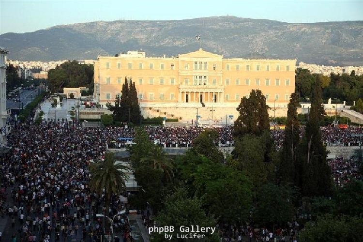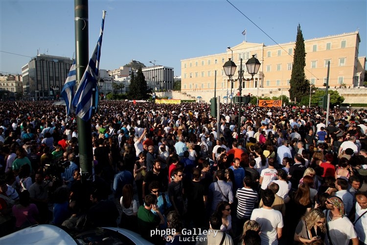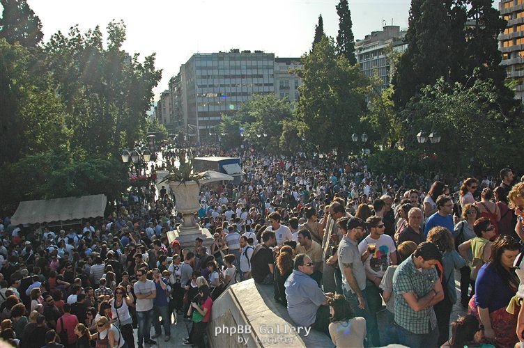 Η αποκαλούμενη «ισπανική επανάσταση» έφτασε και στην Ελλάδα, καθώς χιλιάδες ατόμων βρίσκονται ως αυτή την ώρα έξω από τη Βουλή, κρατώντας κλειστή τη Βασιλίσσης Σοφίας και φωνάζοντας συνθήματα κατά του πολιτικού συστήματος, της οικονομικής κρίσης και των περικοπών.