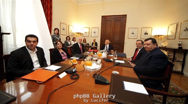 Το Συμβούλιο ξεκίνησε με την ενημέρωση από τους υπουργούς Οικονομικών και Εξωτερικών κ.κ. Γιώργο Παπακωνσταντίνου και Δημήτρη Δρούτσα ενημέρωσαν το Συμβούλιο των Πολιτικών Αρχηγών αναφορικά με τα φλέγοντα οικονομικά και θεσμικά θέματα.