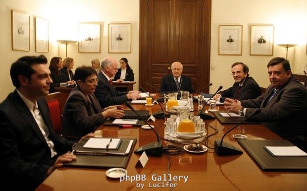 Εξερχόμενος από το Προεδρικό Μέγαρο ο πρόεδρος του ΛΑ.ΟΣ κ. Γ. Καρατζαφέρης δήλωσε ότι «οι καρέκλες κάποιων είναι πάνω από την Ελλάδα». Κάτι που εκτιμάται ως μη επίτευξη συμφωνίας μεταξύ των πολιτικών αρχηγών.