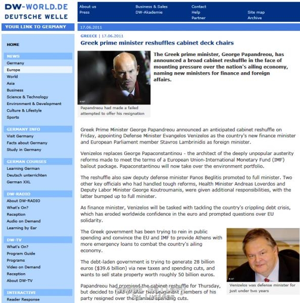 Στο ίδιο μήκος κύματος και η γερμανική Deutsche Welle που επικεντρώνεται στην αλλαγή φρουράς στο υπουργείο Οικονομικών.