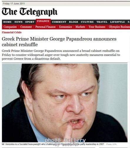 Το πρόσωπο του Ευάγγελου Βενιζέλου κάνει τον γύρο του κόσμου, αφού αυτός πήρε στα χέρια του την "καυτή πατάτα" της ελληνικής οικονομίας.