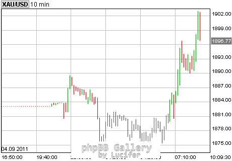 Μια ανάσα απο τα 1900 δολάρια έχει βρεθεί ο χρυσός το μεσημέρι της Δευτέρας καθώς τα χρηματιστήρια στην Ευρώπη και τα Futures στην Αμερική κινούνται πτωτικά. Σχεδόν 3 χρόνια πριν, τον Οκτώβριο του 2008, που το κραχ στα χρηματιστήρια ήταν σε εξέλιξη, ο Χρυσός διαπραγματευόταν κάτω από τα 700 δολάρια.Εκτοτε, η άνοδος του είναι πολύ μεγάλη και δείχνει ότι τα πράγματα στην παγκόσμια οικονομία δεν έχουν βελτιωθεί, αλλά μάλλον έχουν πάρει άσχημη τροπή και από το τραπεζικό πρόβλημα του 2008, έχουμε μεταφερθεί στην τωρινή κρίση χρέους των κρατών.